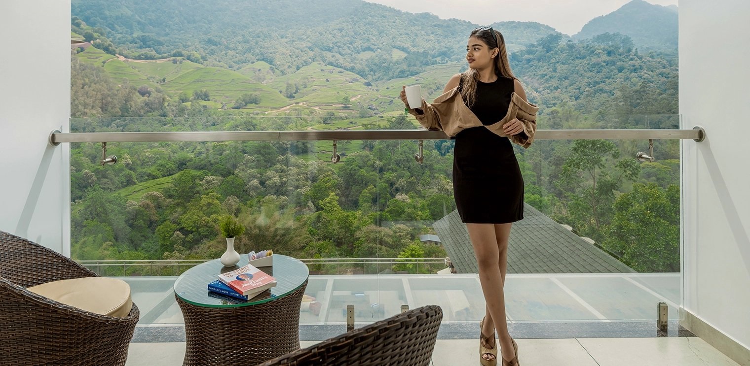 This 5 star Deluxe Premier Palace Resort,in Munnar in Kerala , sprawling across vast expanses, nestled amidst forests, tea gardens, and plantations. The central attraction is the PALACE BLOCK , while the top-end Villas with PRIVATE POOLS ,with stunning views and the QUEEN VICTORIA block offer the epitome of luxury
